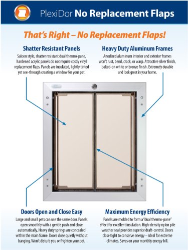 Der hochwertige Aluminiumrahmen und die Plexi-Doppelverglasung machen die Plexidor XL Professional Hundeklappe nicht nur zu einem Hingucker sondern verbessern zudem Einbruchschutz und Sicherheit. Umlaufende Bürstendichtungen und Luftschichtisolierung halten auch witterungsbedingte Extreme zuverlässig ab und bieten gleichzeitig reichlich Komfort für Hund und Herrchen. Festes Verschließen hält auch bei Abwesenheit unerwünschte Eindringlinge zuverlässig fern.