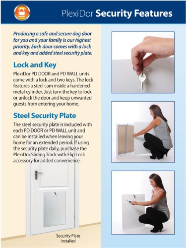 Hochwertige Verarbeitung und solides Material machen die Plexidor XL Professional auch hinsichtlich der Sicherheit zu einem Top-Produkt. Während die Hundeklappe mit einem Schloss verriegelt werden kann, verhindert die aufschraubbare Metallplatte auch bei längerfristiger Abwesenheit das unerwünschte Eindringen von   Einbrechern und Co. äußerst effektiv.
